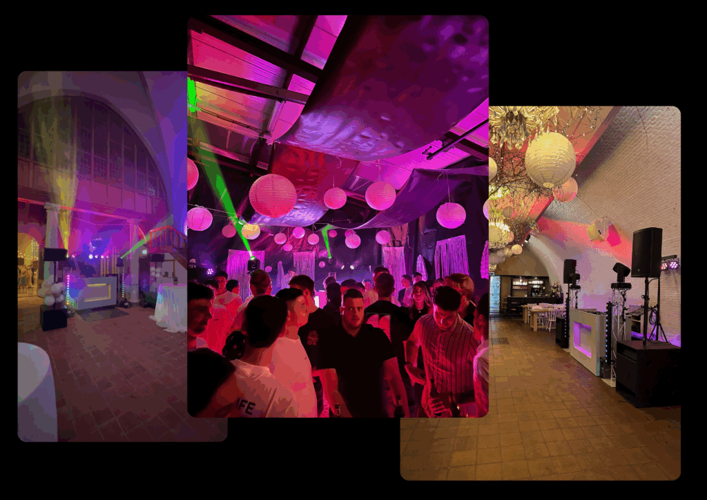 Van een dansvloer vol energie tot een sfeervol diner: elk feest vraagt om de juiste aankleding. Wij zorgen dat licht, geluid en effecten aansluiten bij de gelegenheid, zodat de beleving compleet is.